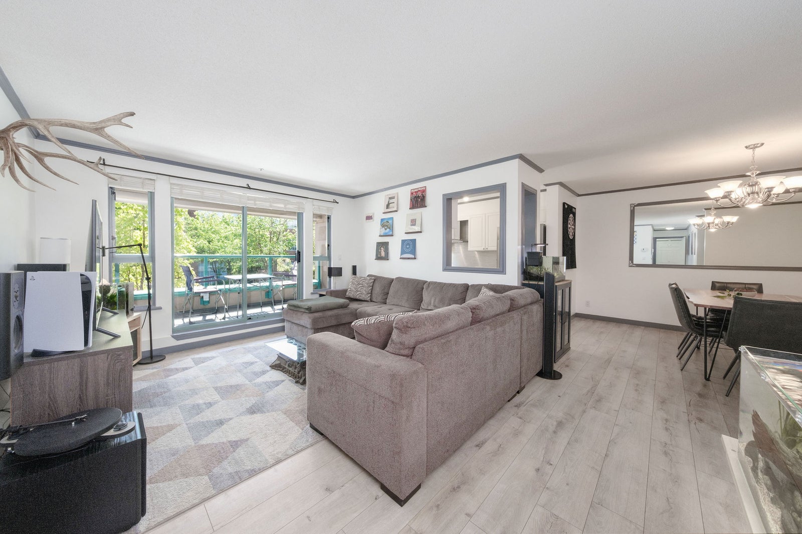 magine the comfort this spacious almost 1100 sqft 2 bedroom, 2 full bathroom condo allows. Imagine the convenience of the location, 20 mins to Downtown or where ever you need to get to without traffic headaches. Now come and see this meticulously renovated home boasting huge rooms, a gourmet kitchen with stainless steel appliances, two luxurious bathrooms, and stunning hardwood floors throughout – truly in amazing move-in condition! One of the largest units in the complex, enjoy an open living and dining concept with access to a large south-facing deck, perfect for entertaining. Complete with in-suite laundry and rare two parking spots. Proactive strata with new Roof underway. Live the Lynn Valley lifestyle!